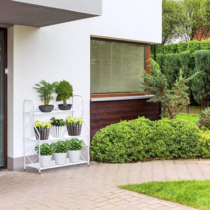 - 3-Tier Folding Design - Mutool metal plant stand has three tiers of shelves and three different heights, providing large storage space for plants of different sizes. In addition, the ladder style allows all plants to get full sunlight and grow healthier.