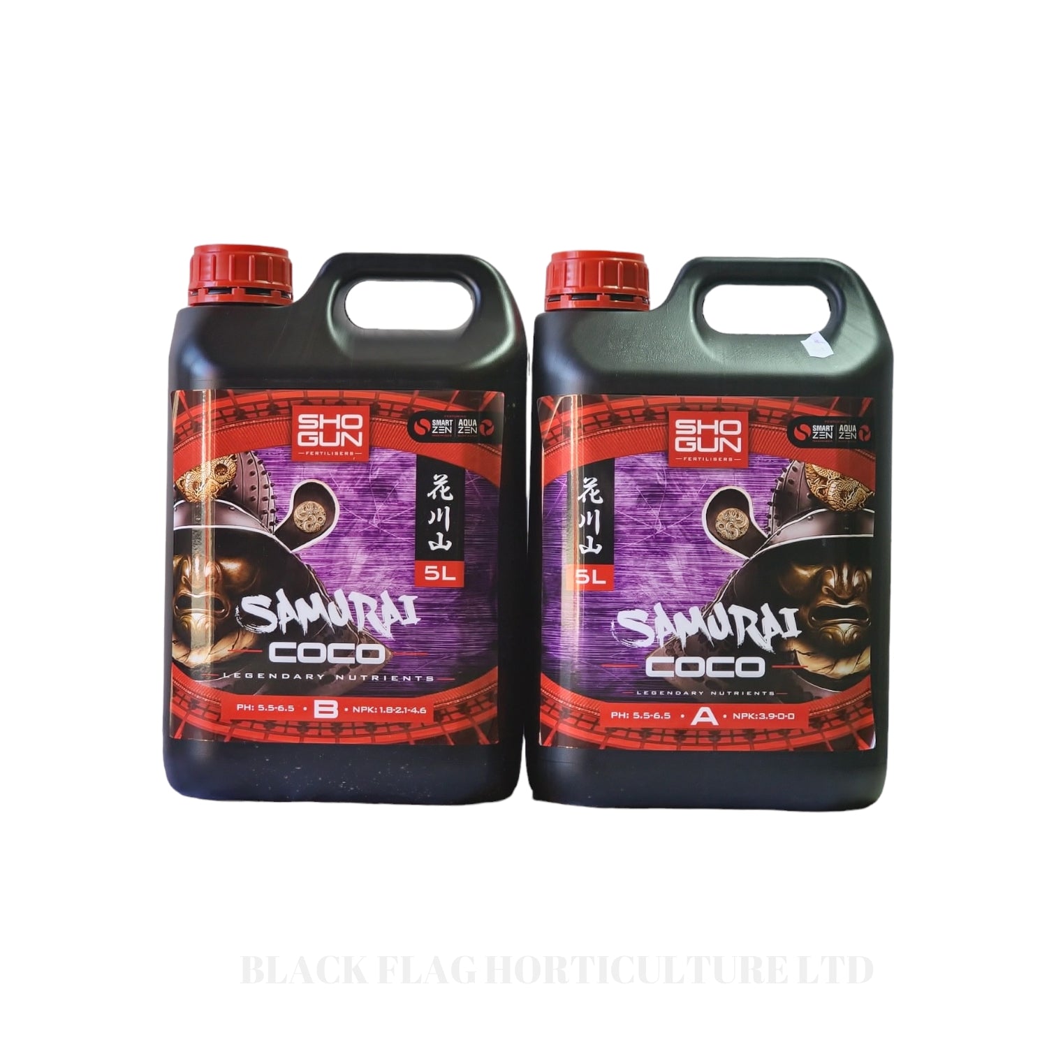 SHOGUN Samurai Coco is a 2 part formulation coco nutrient that is literally light years ahead of all others. With high-grade nutrient ingredients mixed perfectly to maxmise coco performance, SHOGUN Samurai Coco also includes the revolutionary SmartZen® Yield Maximiser and AquaZen® Slow Water ingredients – two developments that are simply without equal in all other coco nutrients.